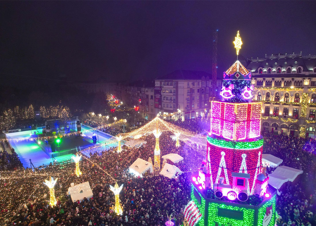 Ontdek de magie van de feestdagen op de kerstmarkt van 28 november tot 26 december 2025. De markt opent zijn deuren om de magie van de winterfeestdagen naar het Unirii-plein en het Ferdinand-plein te brengen, waar u tal van lekkernijen, feestelijke shows en handgemaakte cadeaus vindt in een sprookjesachtige omgeving die uw aandacht zal trekken en uw hart zal veroveren. We kijken ernaar uit u in Oradea te verwelkomen om te genieten van de schoonheid van de winterfeestdagen.