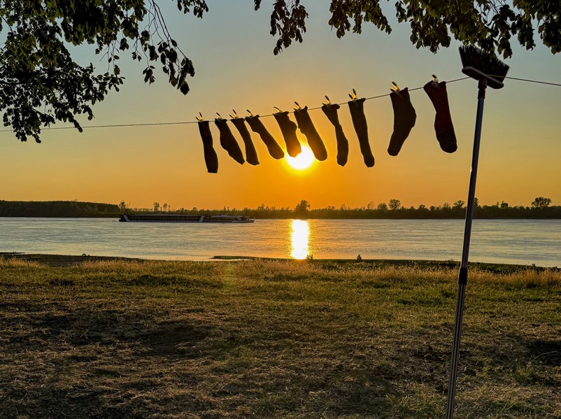 De Donau gleed rustig voorbij, de zon kleurde het water goudkleurig. Een paar vissers, een licht briesje, verder niets. De politie reed twee keer langs – geen woord, geen probleem. Wildkamperen is toegestaan in Roemenië, zolang je respectvol blijft. Voor ons was het de belichaming van vrijheid: geen camping, geen check-in, geen tijdsdruk. Alleen wij, de rivier en de mooiste zonsondergang van deze camperreis.